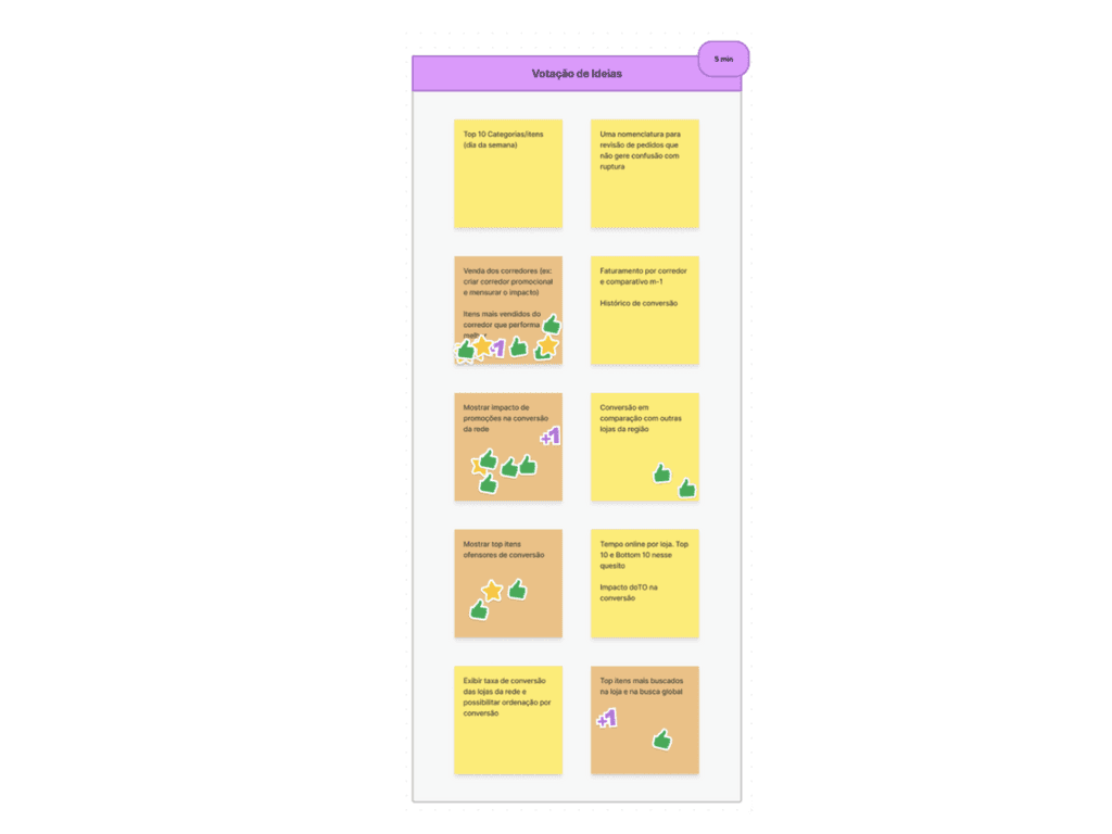 The most relevant needs were taken to a second dynamic with the development team, PDs and PM. After receiving the same context given to the executives, the team was able to vote on the needs they considered most relevant to the partners.